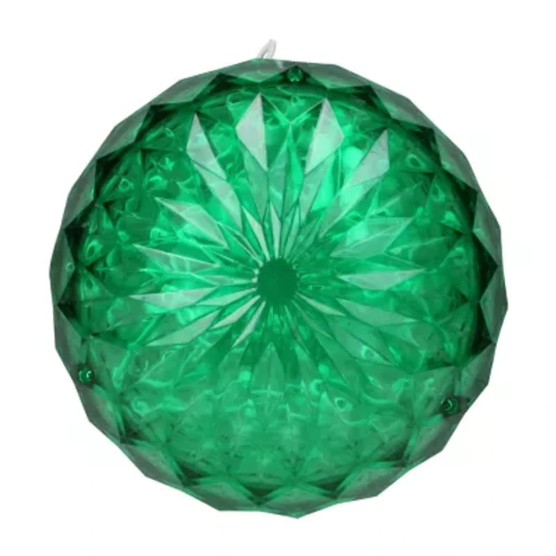 Light up the night with this awesome led crystal sphere. Designed with wide-angle led lights the sphere is sure to add shine to your outdoor holiday decor. Great for St. Patrick's Day and much more. Product features: Number of bulbs inside sphere: 20. Bulb color: green. Bulb size: wide angle. Ul certified and approved for indoor or outdoor use. 24" white lead cord. Rugged non-glass bulbs. Faceted design helps maintain stability for tabletop display as well as diffusing radiant light. Additional product features: Saves up to 90% energy. Ultra long life. Generates minimal heat. Contains 1 plug with end connector allowing you to stack multiple lighted items together (not to exceed 210 watts). Contains 2 spare bulbs and 1 replacement fuse. Sphere hangs from white electrical cord. 120 volts 60 hertz .02 amps 2.4 watts. Dimensions: 6" diameter (150mm). Material(s): plastic/wire