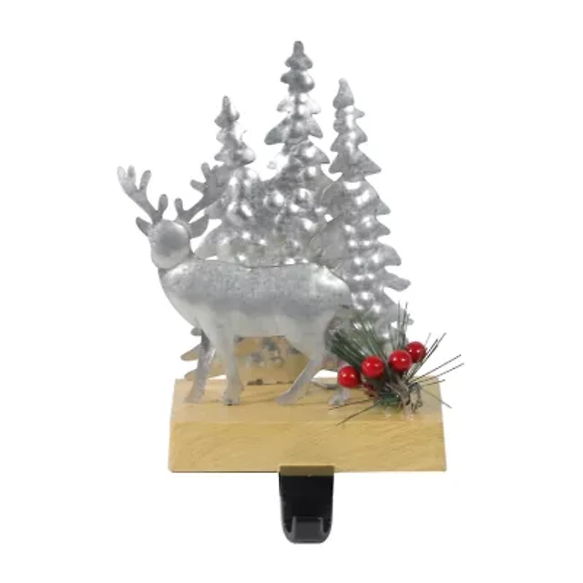 Northlight 8.5in Silver And Brown Galvanized Metal Deer With Tree Christmas Stocking Holder