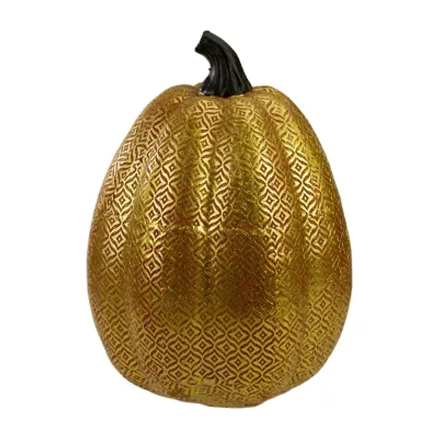 Northlight 9.75in Gold And Orange Greek Key Textured Autumn Pumpkin Thanksgiving Tabletop Decor