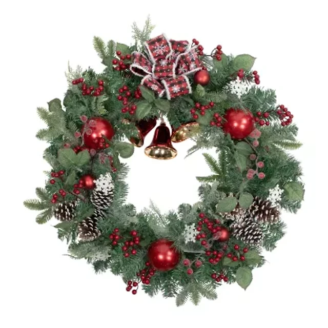 Artificial Mixed Foliage with Pine Cones Christmas Wreath 28" Unlit