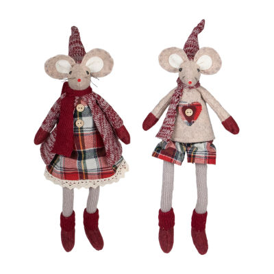Northlight Set Of 2 Boy And Girl Sitting Plush Christmas Mice 17in Christmas Figurine