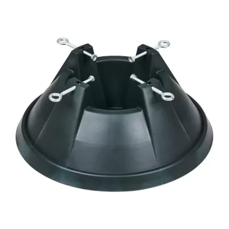 This sturdy tree stand is the perfect choice for your live Christmas tree. The tip proof design offers piece of mind. Equipped with a water catching lip at the base for any overflow. Made of heavy duty plastic it won't rust stain or scratch floors. Product Features: 4 adjusting screw bolts. Tip proof design. Built-in spill catching lip. Trunk diameter: 2.25" - 5.5". For use with trees up to 8ft. .75 gallon capacity. Dimensions: 7.5" high x 18" diameter. Material(s): plastic/metal screws