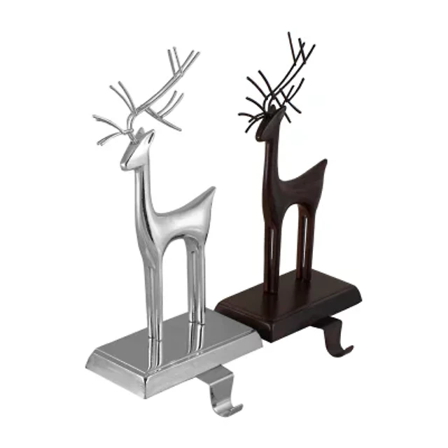 Northlight Oil Rubbed Bronze And Silver Reindeer 2-pc. Christmas Stocking Holder
