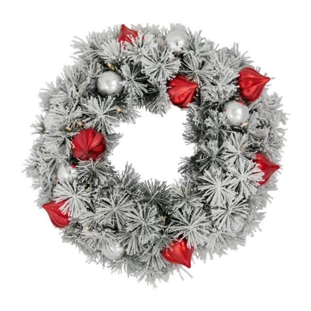 Northlight Pre-Lit White Valley Pine Artificial Christmas Wreath