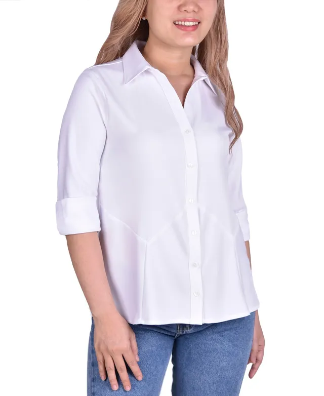 Ny Collection Women's 3/4 Sleeve Button Front Blouse