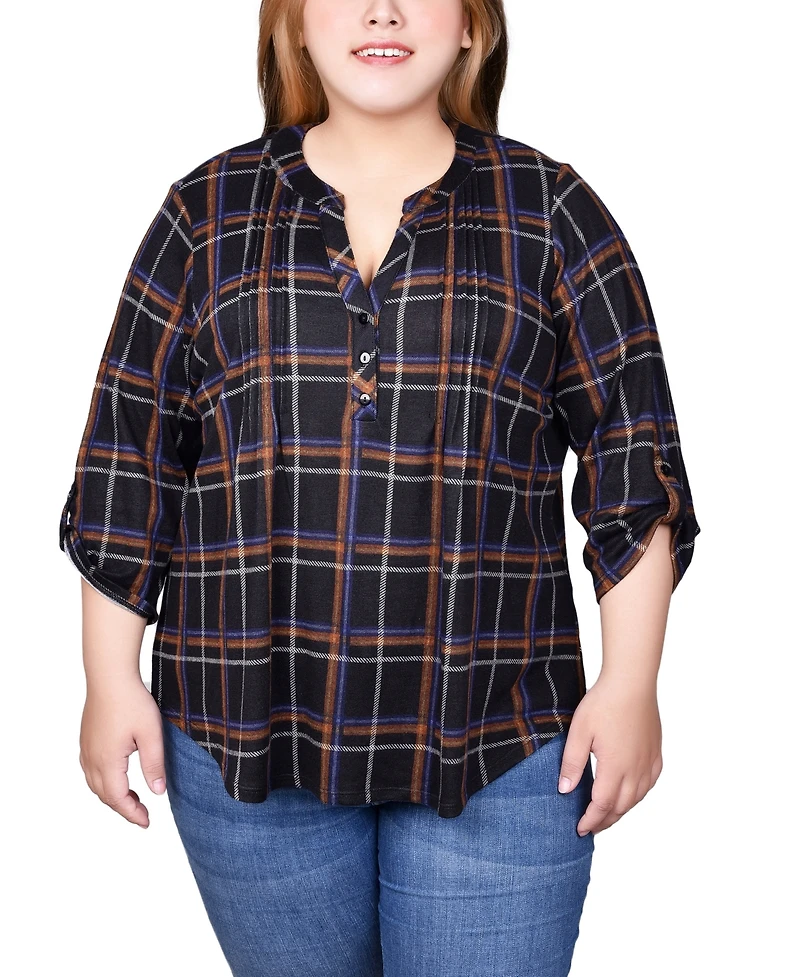 Ny Collection Plus 3/4 Roll Sleeve Top