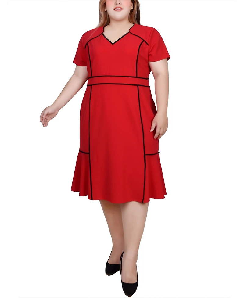 Ny Collection Plus Short Sleeve Piped Detail Dress