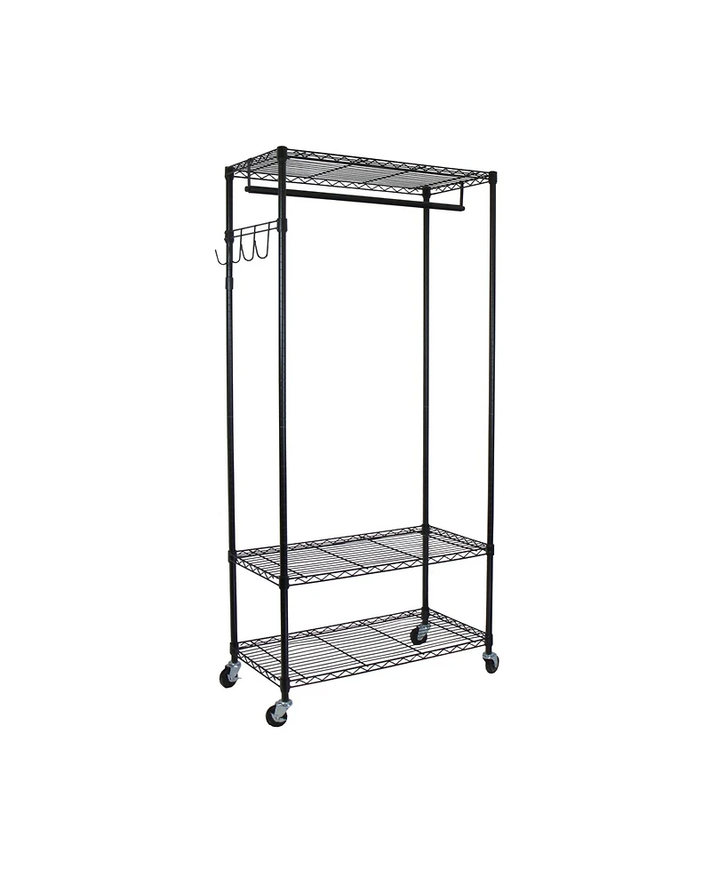 Be rid of clutter with the all-in-one solution to your storage needs! Constructed with heavy duty steel, the Oceanstar Garment Rack is not only easy to assemble, but sturdy enough to hold heavy garment pieces such as winter wear, gowns, handbags, and footwear, which can all be neatly organized and easily accessible from this one rack. It features 3 height adjustable shelves for extra storage capacity and a detachable hanging bar that easily accommodates to the length and size of your garments. Arrange your handbags onto the removable hook bracket at the desired height. With 4 heavy duty caster wheels for easy transportation, the rack moves effortlessly to anywhere in the home. The Oceanstar Garment Rack not only provides additional storage space but caters specifically to your storage requirements. It is the ideal addition to your home and bath environment.