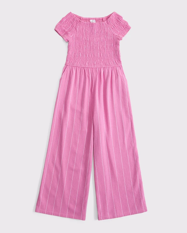 off-the-shoulder smocked jumpsuit
