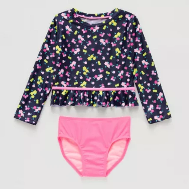 Okie Dokie Toddler & Little Girls Floral Rash Guard Set