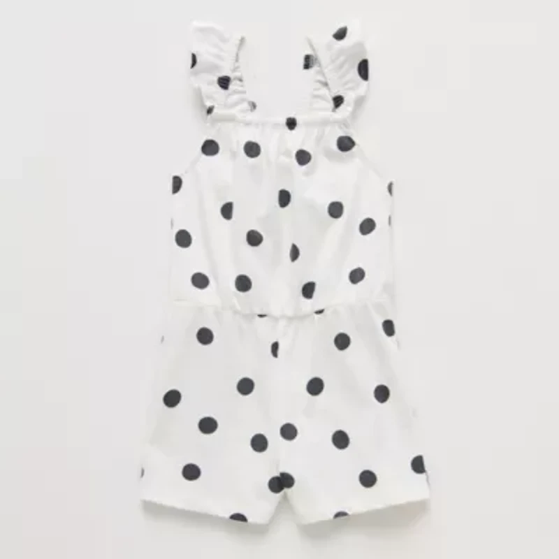 Update her wardrobe with fun printed pieces for spring and summery days with this Okie Dokie toddler and little girl's romper. Made from a soft recycled cotton-jersey blend, this sleeveless romper has ruffled straps for a pretty finishing touch. Wear it with sandals or sneakers.