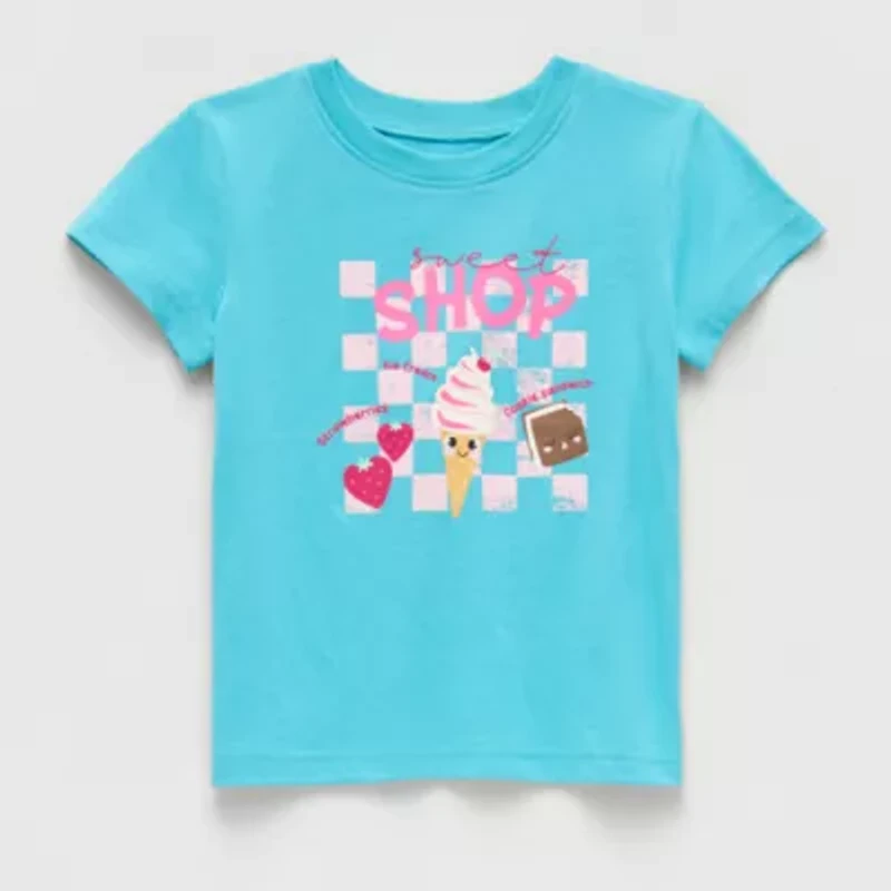 Okie Dokie Toddler & Little Girls Round Neck Short Sleeve Regular Fit Graphic T-Shirt