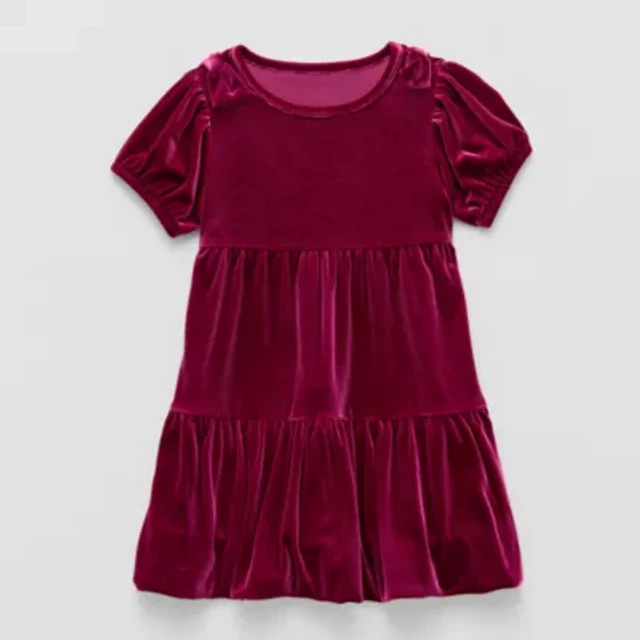 Okie Dokie Toddler & Little Girls Velour Short Sleeve Balloon Drop Waist Dress