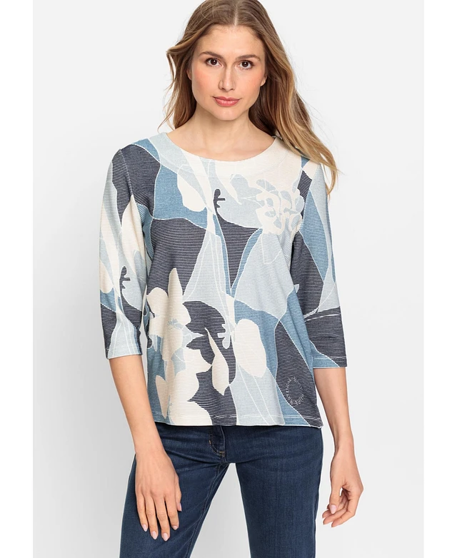 Olsen Women's 3/4 Sleeve Abstract Floral Top