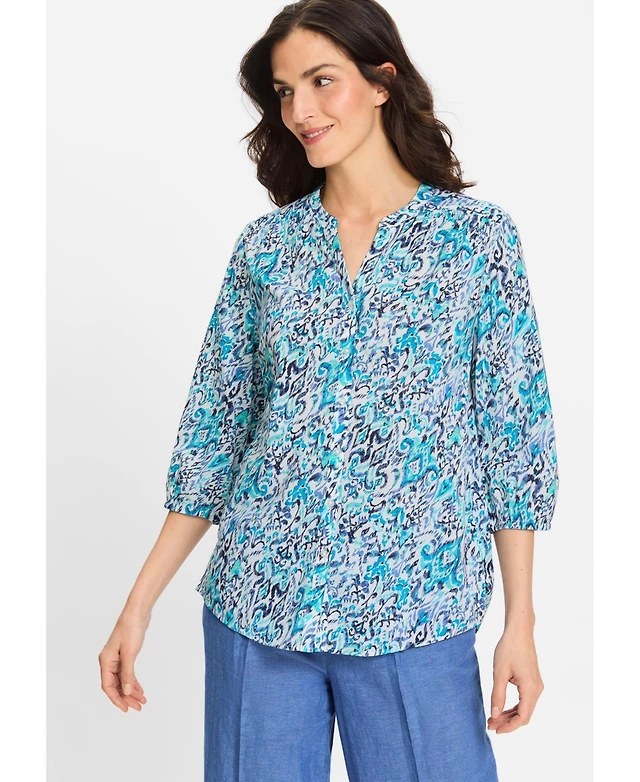 Olsen Women's Tropic Mix Print Tunic Blouse