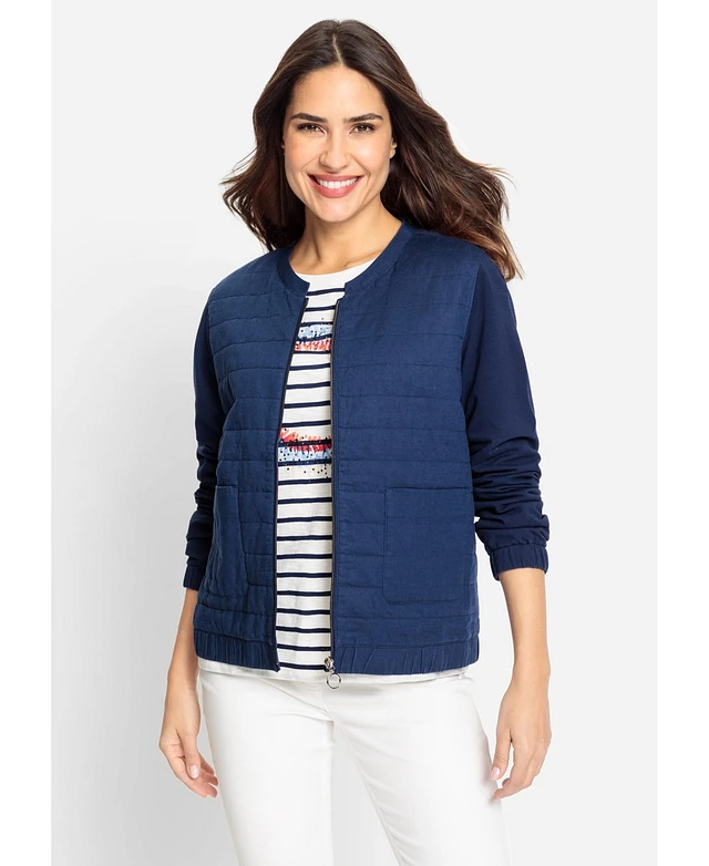 Olsen Women's Quilted Mixed Media Zip Front Cardigan