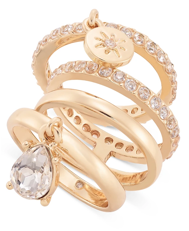 On 34th Gold-Tone 3-Pc. Set Crystal Star Charm Stack Rings, Created for Macy's
