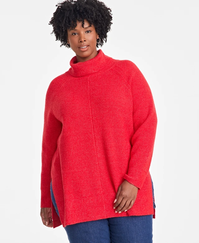 On 34th Plus Turtleneck Waffle-Knit Tunic Sweater, Created for Macy's