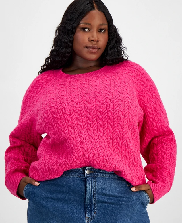 On 34th Trendy Plus Cable-Knit Crewneck Sweater