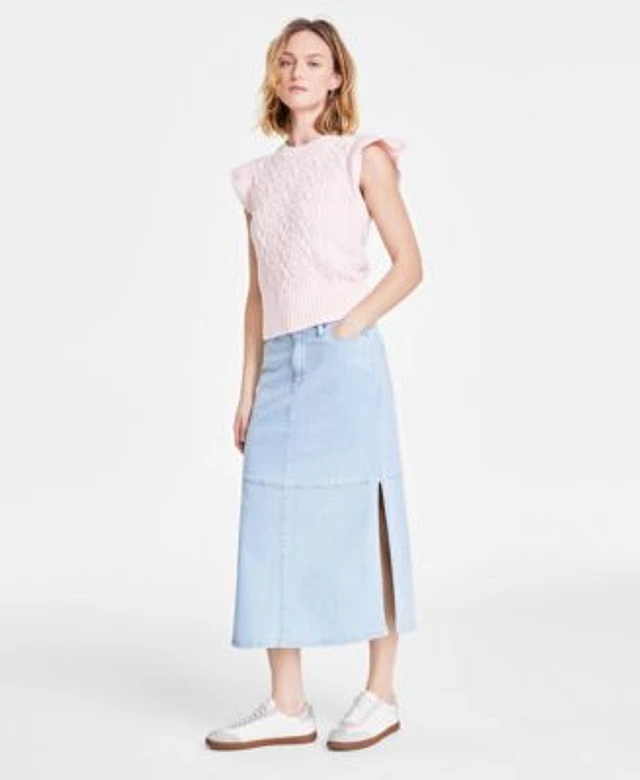 On 34th Womens Cable Knit Flutter Sleeve Sweater Split Seam Denim Midi Skirt Exclusively At Macys