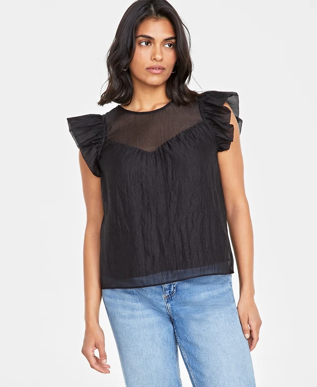 On 34th Women's Sheer Ruffle Sleeve Top, Created for Macy's