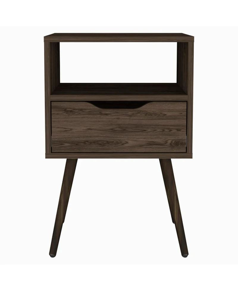 Good looking design and practical styling meet to form this 25-inch one drawer faux wood nightstand. Robust in design, the bed side table has been expertly crafted from manufactured wood. Includes a drawer to help keep your essentials close by and hidden. An easy-access shelf gives you additional storage and display space. The unsung hero of the bedroom, this nightstand is perfect for keeping a glass of water, lamp, alarm clock, jewelry, and more, close by and easily accessible. Versatile in use this nightstand would also work as a great end table in the living room, hallway, or office.