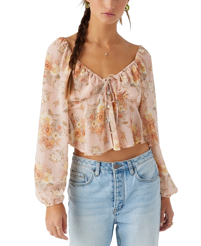 O'Neill Juniors' Autumn Floral-Print Cropped Puffed-Sleeve Top