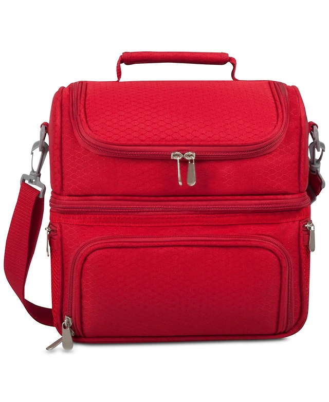 Pack a generous lunch in the insulated Pranzo Lunch Tote from Picnic Time. Separate top and bottom sections allow you to isolate foods that need to stay at different temperatures and zippered mesh pockets on each side provide extra storage.