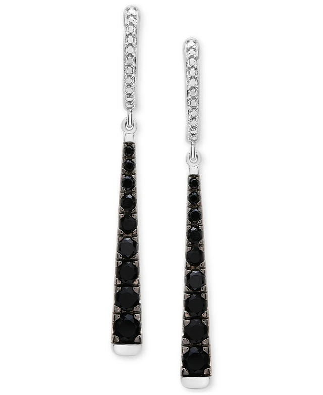Onyx Graduated Linear Drop Earrings in Sterling Silver