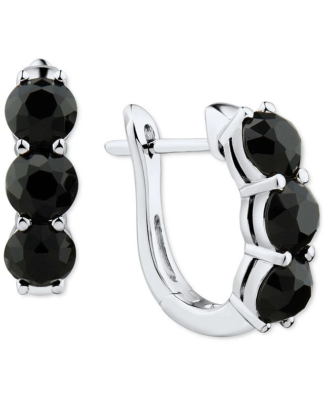 Onyx Huggie Hoop Earrings in Sterling Silver