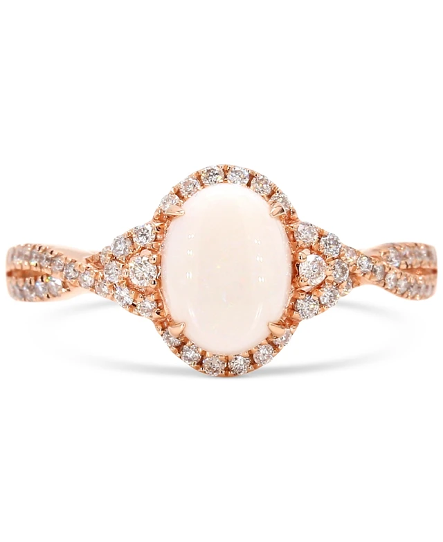 Opal (1 ct. t.w.) & Diamond (1/3 ct. t.w.) Twist Halo Ring in 10k Rose Gold