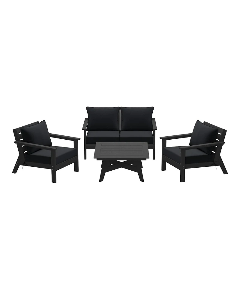Invite friends and family over this season and gather around our charming 4 seating 5-piece outdoor patio furniture sectional set. Sink into comfort on the high-resilience foam-filled, water-repellent deep seating patio cushions, far superior to regular polyurethane foam. Crafted from durable Hdpe material, with fade-resistant and weather-resistant properties.