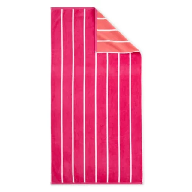 Outdoor Oasis Cabana Stripe Fushia & Coral Beach Towel