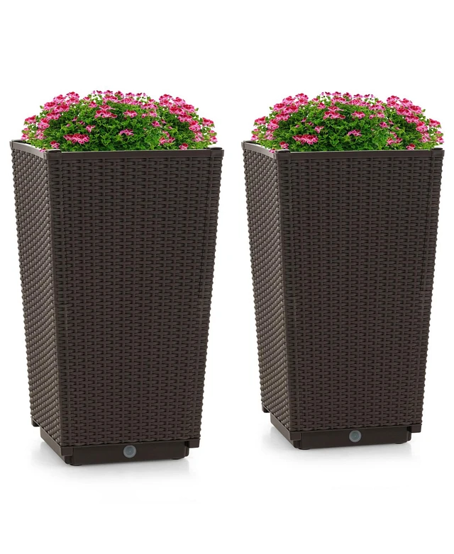 Streamdale Modern Faux Rattan Square Planter with Irrigation System (2-Pack, 22.6 inch, Brown)