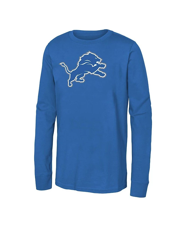 Outerstuff Big Boys and Girls Blue Detroit Lions Primary Logo Long Sleeve T-Shirt
