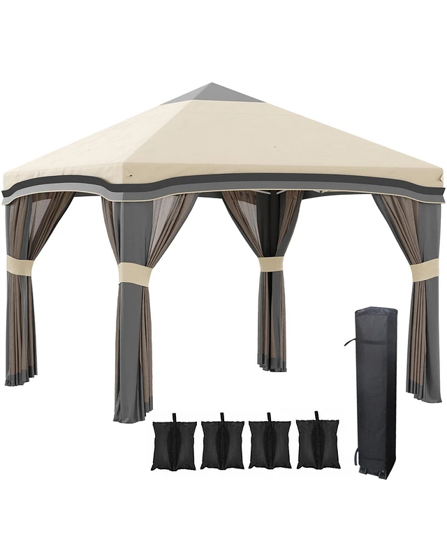 Outsunny 10' x 12' Hardtop Patio Gazebo, Netting Curtains,