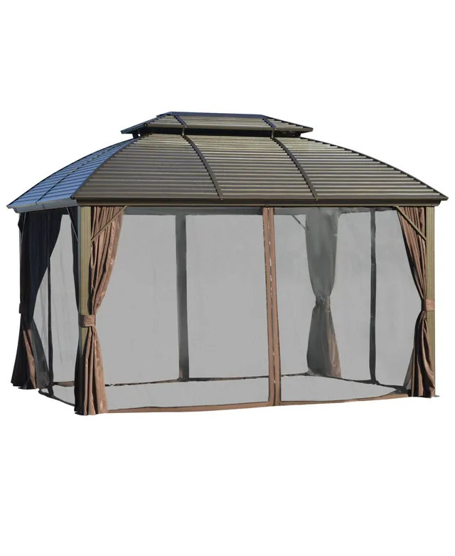 Outsunny 10' x 12' Metal Roof Hardtop Gazebo w/ Curtains & Netting, Brown