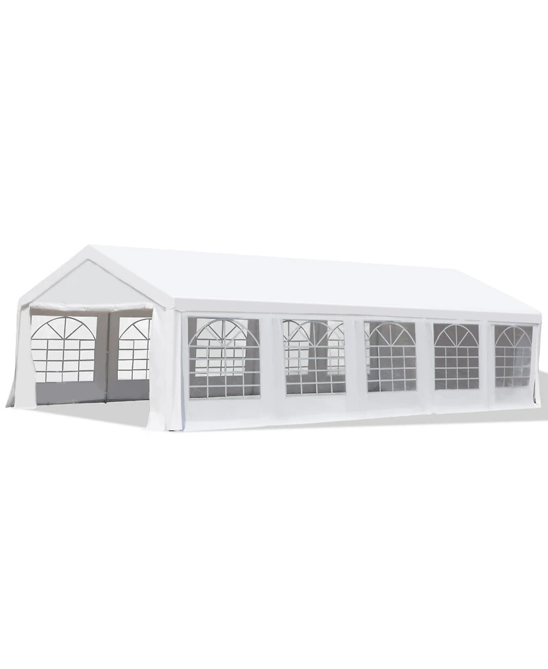 Outsunny 16' x 32' Large Outdoor Carport Canopy Party Tent with Removable Protective Sidewalls & Versatile Uses, White