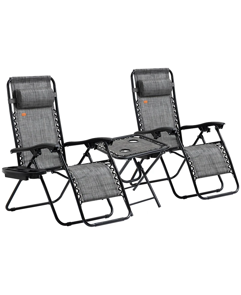 Outsunny 3-Piece Outdoor Chaise Lounger Chair Set, Folding Reclining Zero Gravity Chair with Side Table, Cup Holder and Headrest for Patio, Yard
