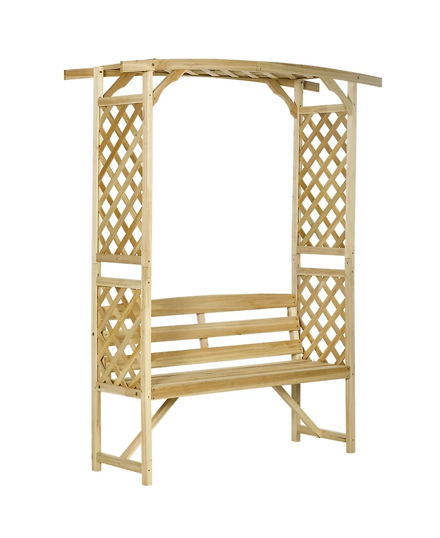 Outsunny Patio Garden Bench Arbor Arch with Pergola and 2 Trellises, 3 Seat Natural Wooden Outdoor Bench for Grape Vines & Climbing Plants, Backyard D