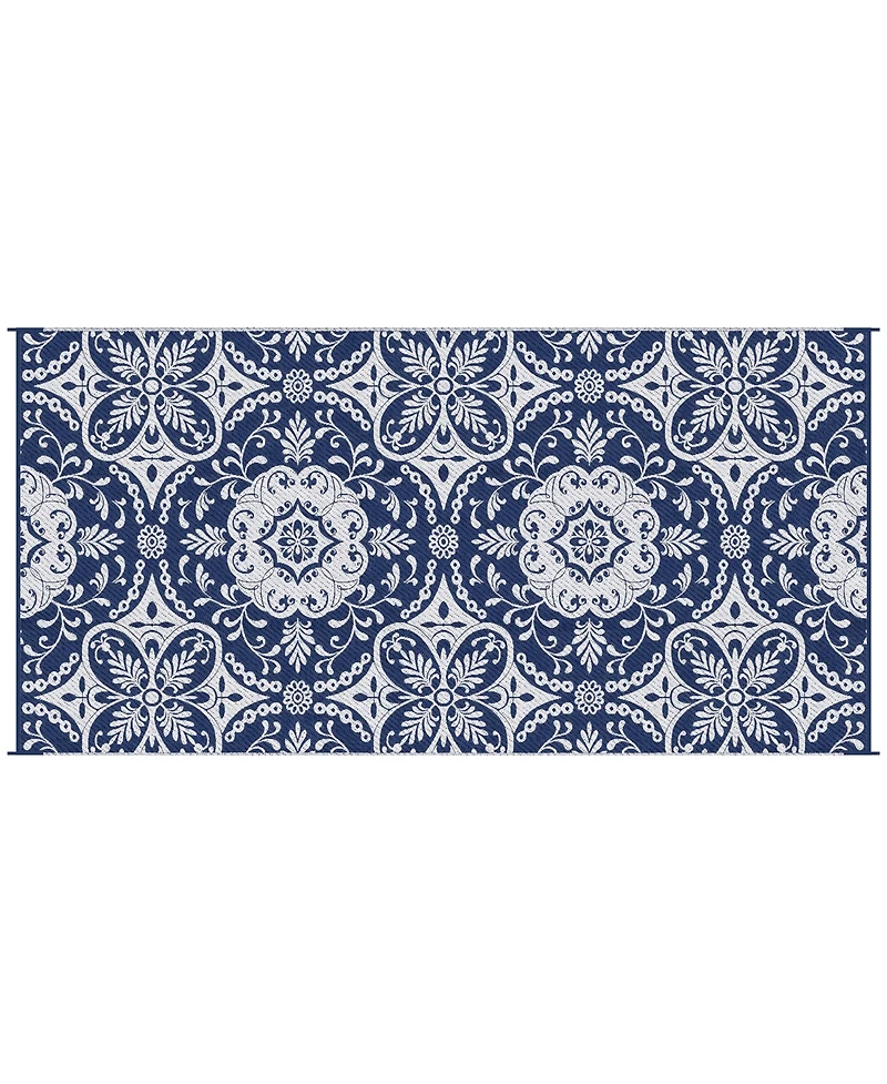 Outsunny Reversible Outdoor Rug with Carry Bag 9' x 18' Blue & White Flower