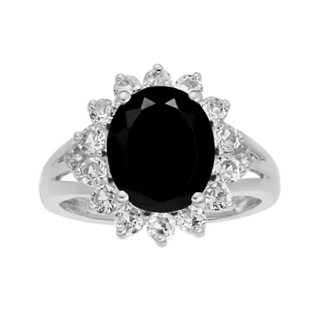 Oval Genuine Black Onyx and Lab-Created White Sapphire Ring