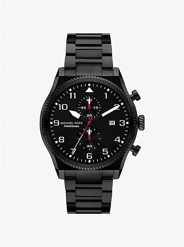 Oversized Panorama Black-Tone and Crocodile Embossed Leather Watch