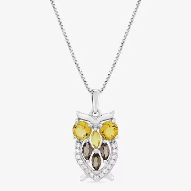 Limited Quantities! Owl Womens Diamond Accent Genuine Yellow Citrine Sterling Silver 18 Inch Pendant Necklace