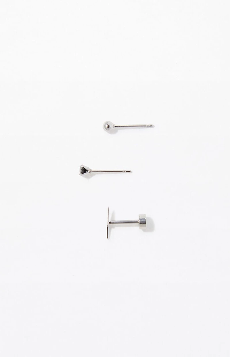 Indulge in the perfect blend of style and edginess with the 3 Piece Silver Lighting Bolt Earrings from PacSun. Featuring a mix of earring designs with a post back closure, each adds a cool touch to your look and gets finished off with a silver finish.
