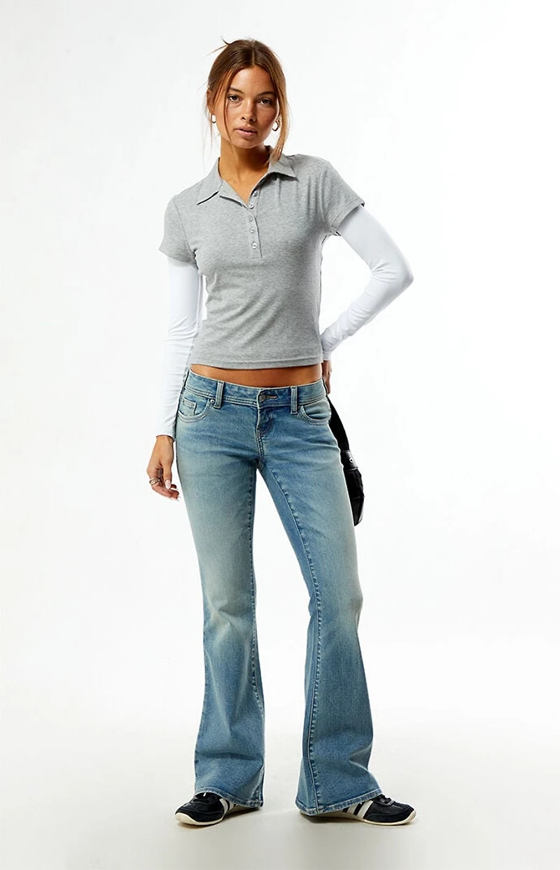 Pacsun Alana Ultra Low Rise Flare Jeans Button Pockets Light Blue