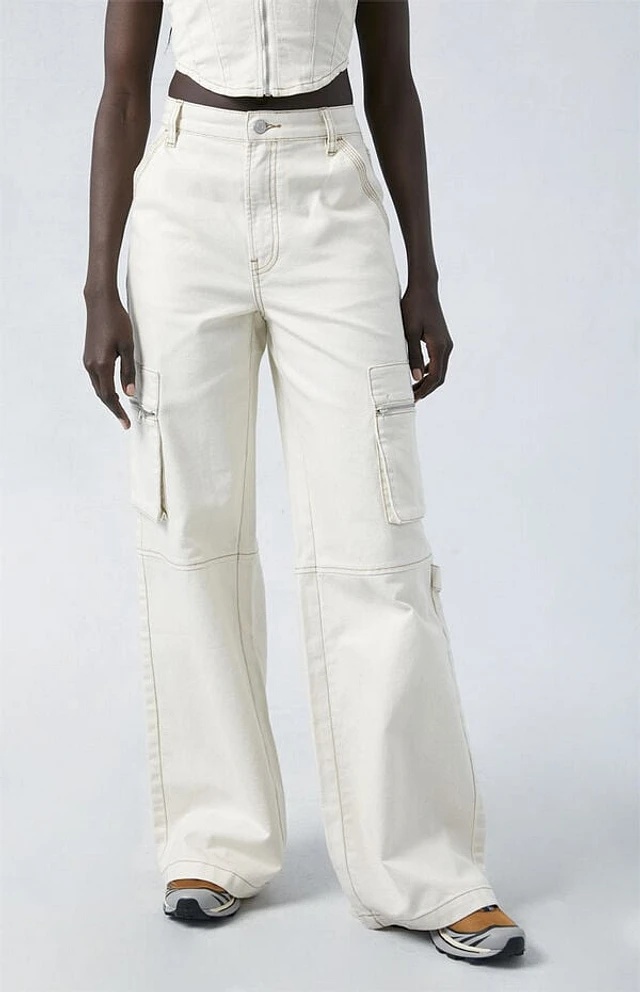 Pacsun Bone High Waisted Wide Leg Cargo Pants