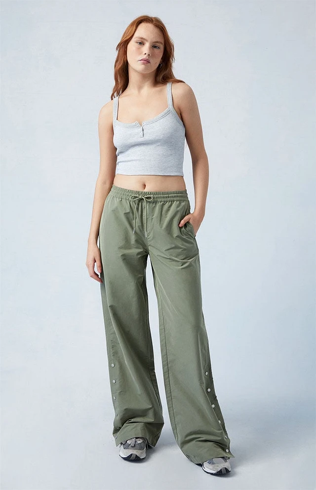 PacSun Olive Tearaway Low Rise Wide Leg Cargo Pants