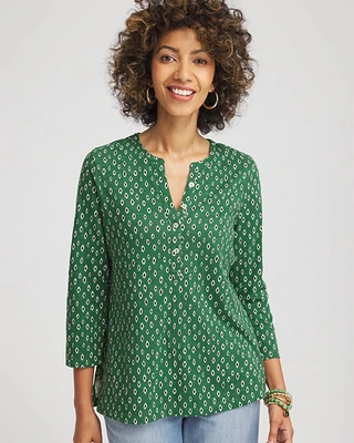 The perfect layering tee. Crafted with breathable, soft cotton slub and cut for a casual fit, this Henley shirt is detailed with shell-inspired buttons at the placket and a palm-frond-motif in salted lime hues. Wear on its own with jeans, matching pants or under a lightweight jacket.