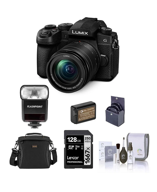 Panasonic Lumix G95 Mirrorless Camera with Lumix G Vario 12-60mm f/3.5-5.6 Mft Lens Bundle with Flashpoint Ttl Flash, Shoulder Bag, 64GB Sd Card, Extr